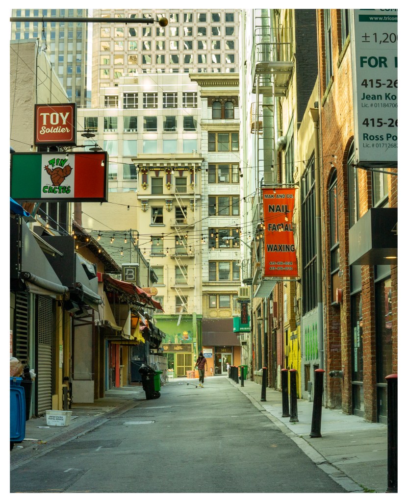 JD and some other friends of mine went to all over San Fran and Berkeley that day. I used my 50mm on my brother’s shot. I lightly edited his photograph to cool it down a little and add more contrast. On the other shot, I also used my 50mm although I wished I would of used my telephoto lens. I ended up cropping the original shot to try to focus more on my brother. I enjoyed the leading lines created by the paved road and the large number of rectangles found in the frame.