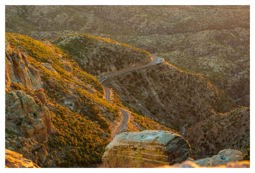I have had these frames in my memory card for a while now. I think I took them back in January 2021. They were taken on the Catalina highway while looking down on the winding roads. I loved the warm sunset light that splashed on the grays and greens in the shots.